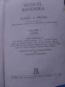 MANUEL BANDEIRA, Manuel. Poesia e prosa. vol. 1 – Poesia. Rio de Janeiro: Aguilar, 1956. 1811p. Papel bíblia e capa de couro. 18x15cm. Preço: R$ 150